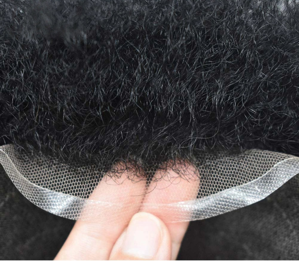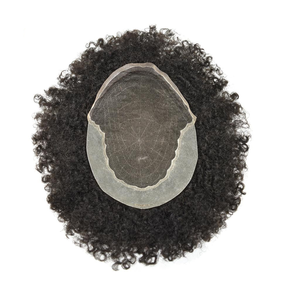 Afro Curly French Lace Front Hairpiece for Black Men Weave Hair Unit